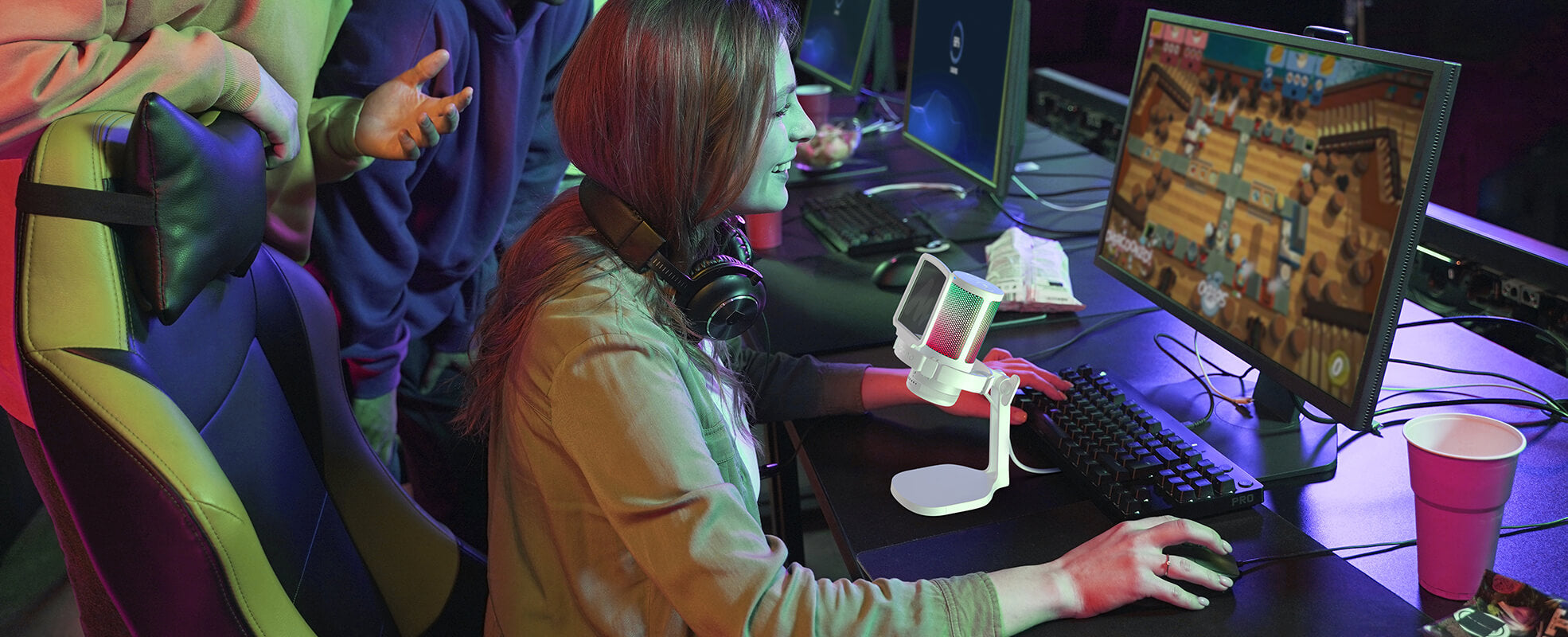 DGM20 GAMERWAVE es un micrófono USB fácil de usar para gamers, con alta frecuencia de muestreo, tecnología ENC y soporte para interconexión virtual. Ofrece simplicidad, portabilidad y luz RGB múltiple.